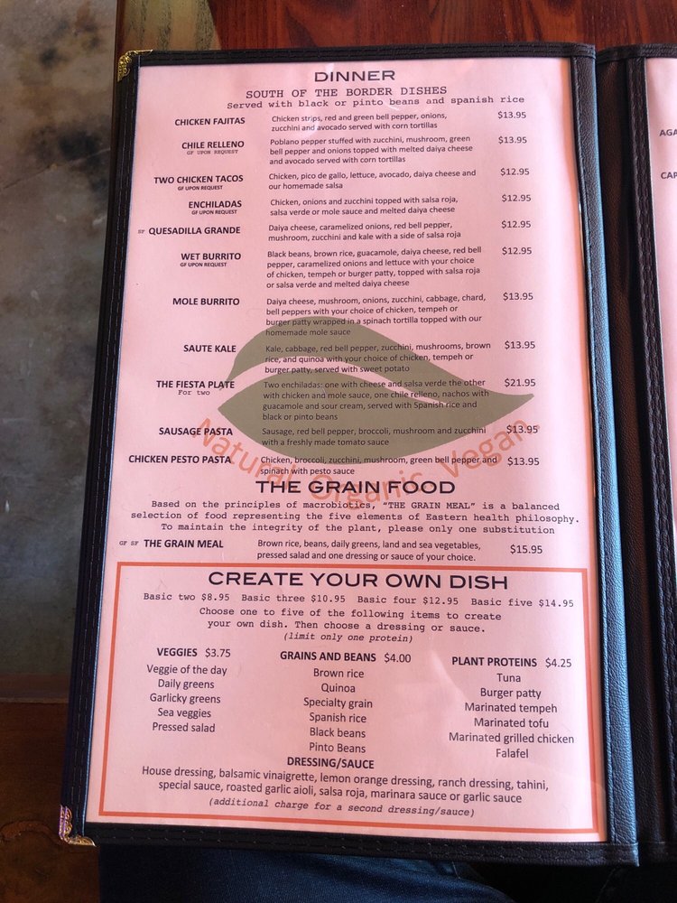 Brown rice, beans, daily greens, land and sea vegetables, pressed salad and 1 dressing or sauce of your choice. Soy-free, gluten free, vegan.